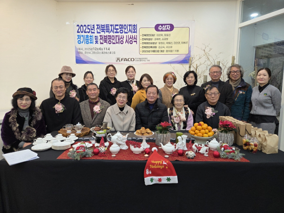 사)한국예술문화명인진흥회 전북특별자치도지회(회장 김상휘)는 지난 6일 ‘2025 정기총회 및 송년회를 군산 그린스미스플라워스쿨 2층에서 개최했다.