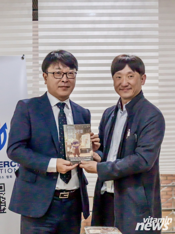 | ▲ 지난 1월16일, 한국인플루언서이커머스협회는 씨앤씨글로벌홀딩스 김대성 대표를 제2대 회장으로 위촉했다. 협회 김명권 이사(우)가 김대성회장(좌)에게 ‘N잡시대 AI 디자인이 답이다’ 저서를 전달하고 있다. |