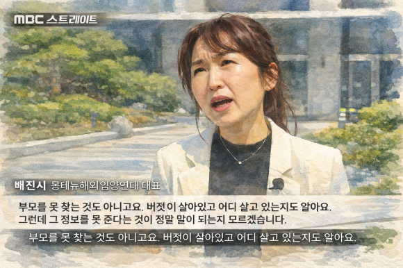 | MBC스트레이트 방송 중 몽테뉴해외입양연대 배진시대표 |