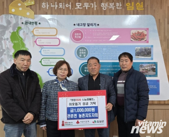 소지현 관촌면장은 “어려운 시기에 이웃을 위하는 마음으로 성금을 기탁해주셔서 진심으로 감사드리며, 관촌면 농촌지도자회에서 보내주신 관심은 지역 주민들의 추운 겨울을 조금 더 따뜻하게 보내는데 큰 힘이 될 것 같다.”고 전했다.
