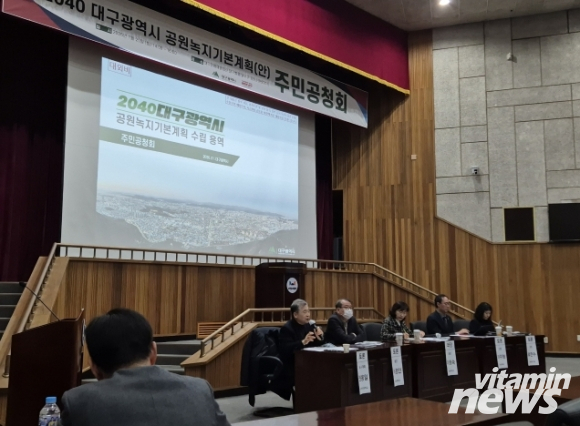 대구광역시는 1월 20일 오후 2시 대구문화예술회관 달구벌홀에서 공청회를 열어 ‘2040 대구 공원녹지기본계획(안)’을 시민에게 처음 공개하고, 향후 대구시 공원녹지 확충·관리·보전 계획을 설명했다.