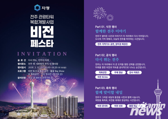 ㈜자광(회장 전은수)은 오는 11일 ‘전주 관광타워 복합개발사업 기공 비전페스타’를 열고 전주의 미래 도시 비전을 시민과 공유한다.