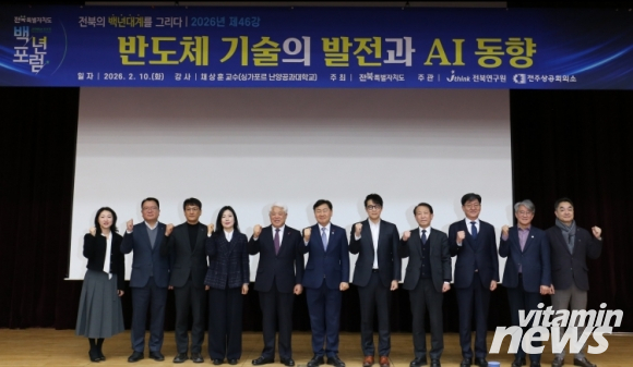 전북연구원(원장 최백렬)은 10일 오전 8시, 전북특별자치도청 4층 대회의실에서 싱가포르 난양공과대학교 채상훈 교수를 초청해 ‘반도체 기술의 발전과 AI 동향’을 주제로 `전북 백년포럼`을 개최했다. 채 교수는 반도체 전문가로, 2026년 1월 ‘자랑스런 전북인상`을 수상했다.