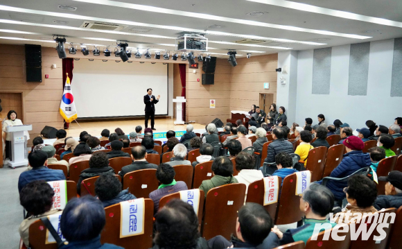 강기정 광주광역시장이 20일 효령노인복지타운에서 열린 '통합특별법으로 여는 복지분야 비전 설명회'에 참석해 뿌리산업 및 인공지능(AI)·모빌리티 등 첨단산업 발전 특례가 담긴 통합 특별법에 대해 시민들과 대화를 나누었다.