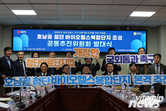 광주광역시(시장 강기정)와 전라남도(지사 김영록)는 23일 오후 2시 국회의원회관 제1간담회의실에서 ‘호남권 첨단 바이오헬스복합단지 조성 공동추진위원회 발대식’을 개최하고, 입법 기반 마련과 정부 지정 전략을 본격 추진한다.