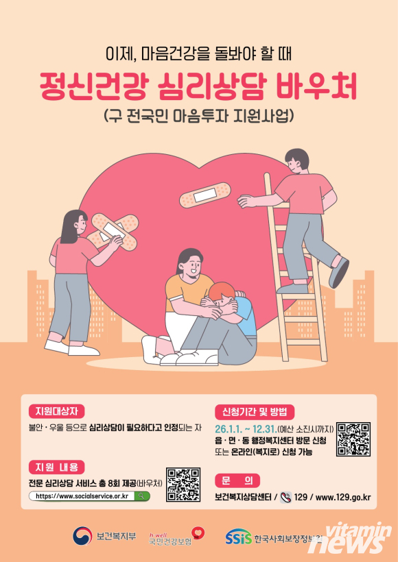 배강숙 건강위생과장은 “심리적으로 도움이 필요한 시민의 마음건강을 돌보고 정신질환을 예방하기 위해 정신건강 심리상담 바우처사업을 운영하고 있다”며 “이 사업을 통해 어려움을 겪는 시민들이 도움을 받을 수 있길 바란다”고 말했다.