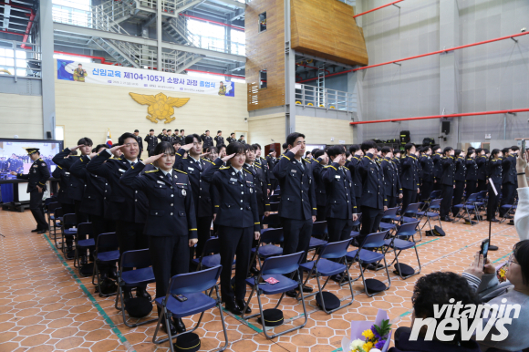 광주광역시 소방학교는 27일 교육훈련관에서 제104·105기 신임교육 소방사 과정 졸업식을 개최했다.