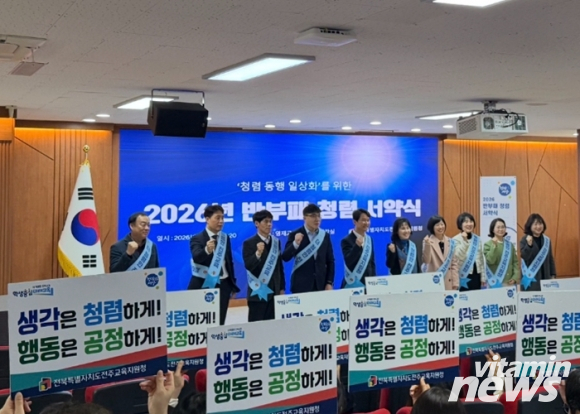 전북특별자치도전주교육지원청은 3일 영재교육원 시청각실에서 청 직원 전체를 대상으로 `2026년 ‘청렴 동행 일상화’를 위한 반부패·청렴 서약식`을 개최했다.