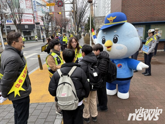 현장에서는 자치경찰 마스코트 ‘안전이’와 ‘행복이’가 “스쿨존의 노란 약속, 횡단보도 앞은 일단 멈춤!” 문구가 적힌 플래카드를 들고 등굣길 학생들을 맞이했다. 참가자들은 “스쿨존은 아이가 우선, 도로 위 페어플레이 일단 멈춤!” 문구가 적힌 어깨띠를 착용하고 운전자들에게 안전운행을 당부했다.