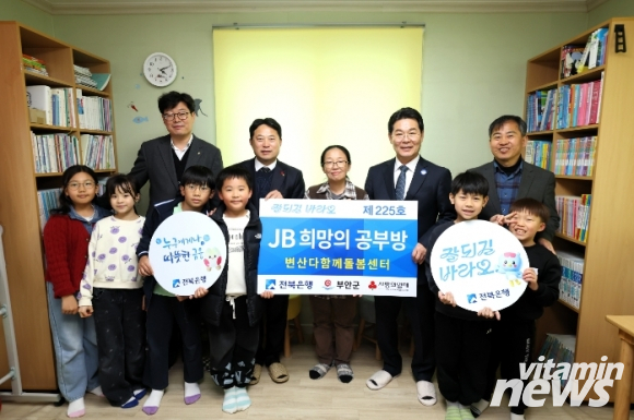 부안군은 JB금융그룹 전북은행(박춘원 은행장) ‘JB 희망의 공부방’ 제225호가 변산다함께돌봄센터에 오픈했다고 밝혔다.