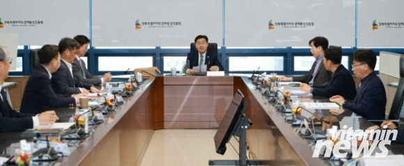 김 지사는 먼저 경제통상진흥원을 찾아 최근 중동 정세 장기화에 따른 유가 상승과 물가 불안 요인을 집중 점검했다. 또한 수출기업과 소상공인이 현장에서 겪는 애로사항을 청취하고, 급변하는 경제 환경에 선제적으로 대응할 수 있도록 맞춤형 지원 강화와 현장 밀착형 정책 추진을 당부했다.