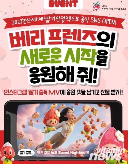 조직위 관계자는 “논산딸기축제와 연계한 SNS 이벤트와 다양한 콘텐츠를 통해 엑스포를 보다 친근하게 알리고자 한다”며 “앞으로도 SNS 채널을 통해 엑스포 준비 과정과 다양한 소식을 지속적으로 공유해 나가겠다”고 말했다.