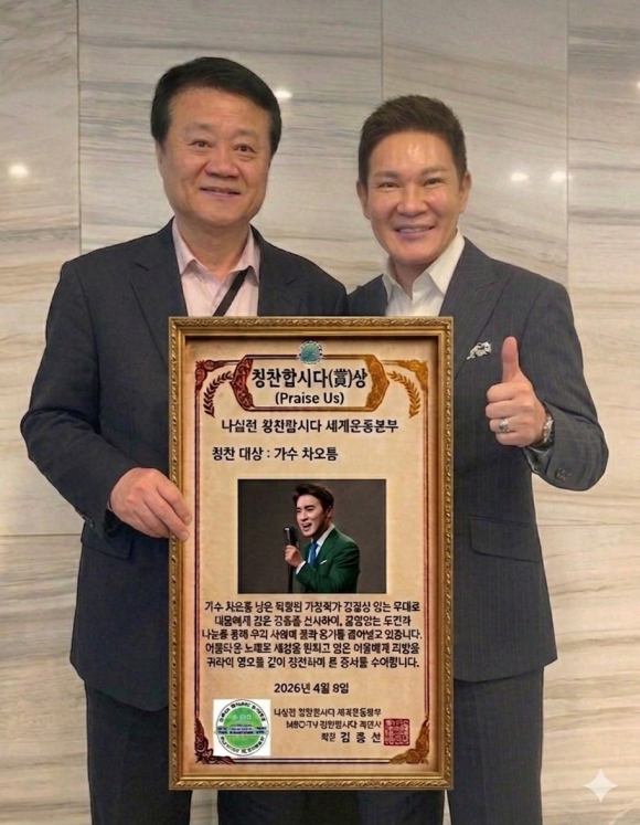나실련은 “차오름 가수는 탁월한 가창력으로 대중에게 감동을 주는 것은 물론, 끊임없는 도전과 나눔을 통해 우리 사회에 꿈과 용기를 심어주고 있다”며 “특히 고난을 극복하고 아름다운 노래로 세상을 밝히는 그의 행보가 ‘칭찬 문화’의 취지와 완벽히 부합한다”고 선정 배경을 설명했다.